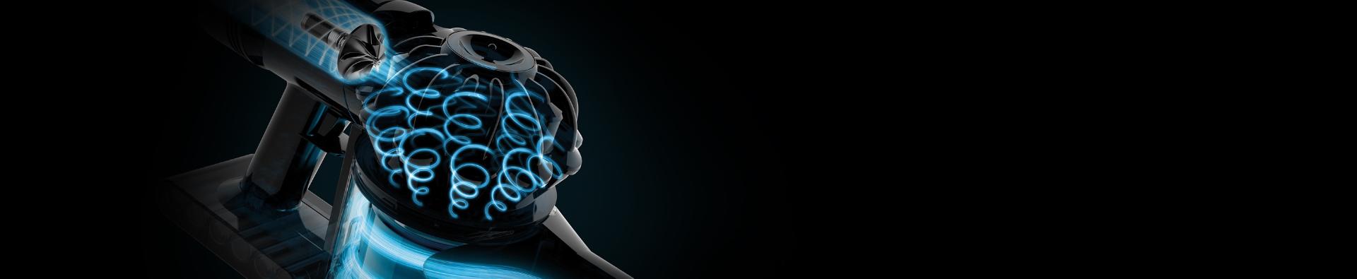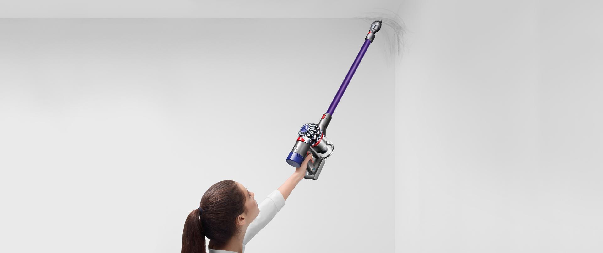 صُممت المكنسة العصا Dyson V7™‎ بحيث يكون المحرك في المقبض، كما تستفيد من مبدأ الروافع الذي وضعه أرخميدس حتى يَسهُل رفع المكنسة واستخدامها في تنظيف الأماكن العالية.
